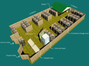 Layout of the wood walling for the camp, to include individual sorting areas and baling section.