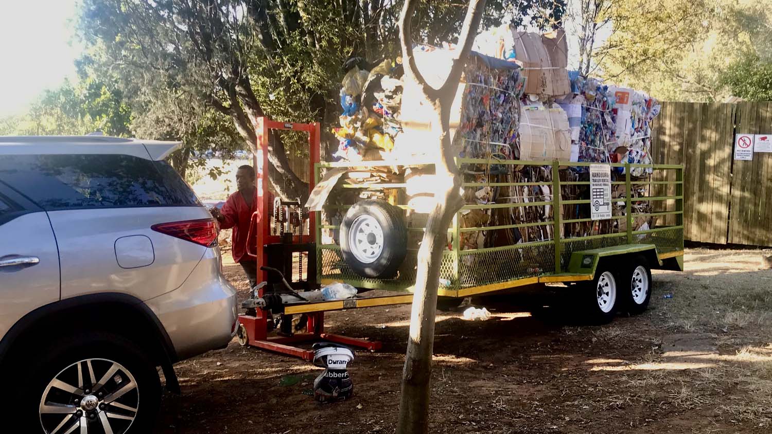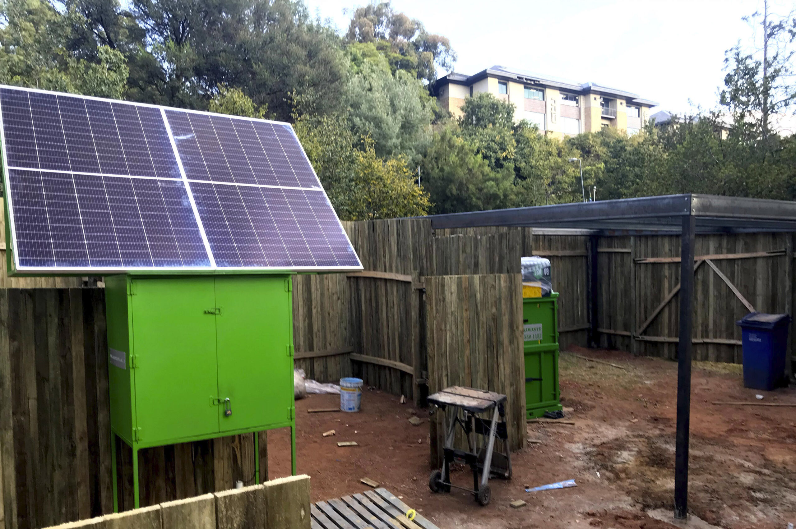 This solar solution provides enough power to bale over 1 ton of recyclables per day.
